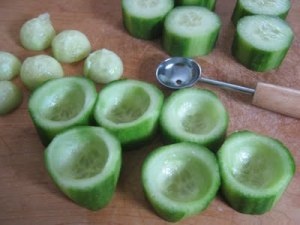 Cucumber cups – fill with healthy chicken, egg, or tuna salad hummus, cottage cheese (low-fat), etc.