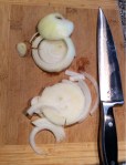 3. Slice 1/2 of a sweet yellow onion (for one chicken)